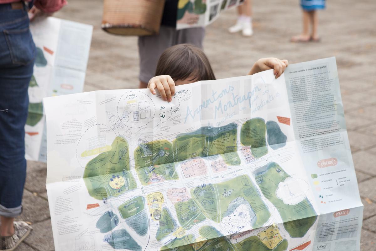 - Création d’une carte sensible avec les données des habitants sur le quartier, et au dos de cette carte on retrouve soixante portraits de ces participants.
